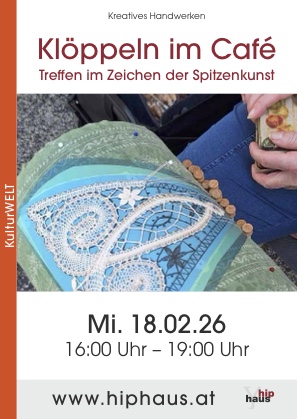 Klöppelbegeisterte sind herzlich eingeladen, jeden 3.Mittwoch im Monat im Café des Bildungshauses St.Hippolyt in St. Pölten gemeinsam zu klöppeln. Klöppeln ist ein anspruchsvolles, technisch unglaublich vielseitiges, faszinierendes und vor allem wertvolles Kunsthandwerk. Vom klassischen Spitzendeckchen bis zum modernen Schmuckstück – mit der jahrhundertealten Handarbeitstechnik Klöppeln bieten sich immer wieder neue Möglichkeiten zur kreativen Freizeitbeschäftigung. Wir möchten Klöpplerinnen und Klöpplern eine Plattform bieten, wo gemeinsames Werken und gegenseitiger Austausch in gemütlicher Kaffeehausatmosphäre möglich ist.
