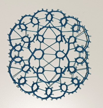Punto Fiandra a tre paia (Flandrische Spitze mit drei Paaren) ist eine feine, harmonische Klöppelspitze. Sie stammt aus Gorizia und besteht aus einem sehr schmalen Leinenbändchen. Die gezeigte Übungsspitze ist aus dem Buch von Diana Dussi.
