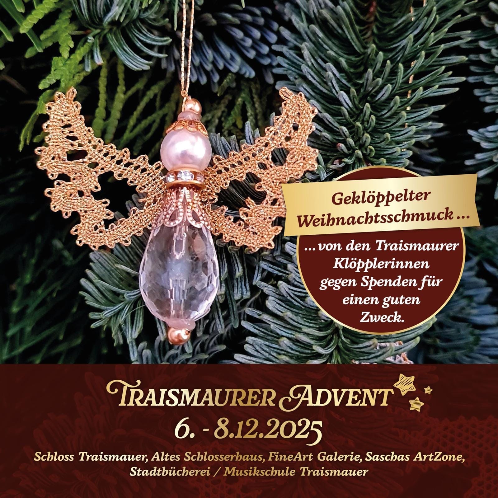 Geklöppelter Weihnachtsschmuck von den Traismaurer Klöpplerinnen gegen Spenden für einen guten Zweck.